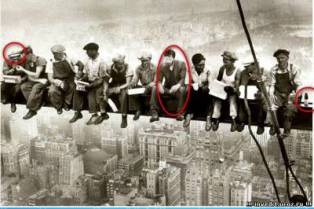 Фото Чарльза Эббетса, которое называется "Обед на вершине небоскрёба".