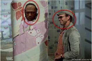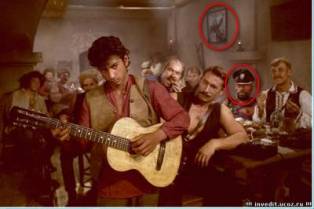 В нем спрятано три ляпа: лицо агента из "Матрицы" вместо Шурика, голова Нэо вместо перевоспитываемого преступника в рулоне обоев и розетка на стене слева в центре.