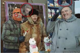 В нем есть три фотоляпа: первый - это морда кота в левом нижнем углу, которая на оригинале отсутствует, второй - это паспорт в руке Жерара Депардье и третий - это жёлтая вывеска "Евросеть", которая находится правее от головы Жерара.
