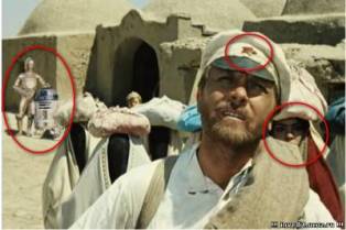 На нем обнаружено 3 фотоляпа: слева изображены роботы из фильма "Звездные войны", звезда на фуражке у главного персонажа и лицо человека, который стоит позади него.