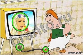 На нем, как всегда, нашлось 3 фотоляпа: лицо высотского вместо лица главного персонажа, надпись на мешке "новая марка", кнопка на телевизоре.