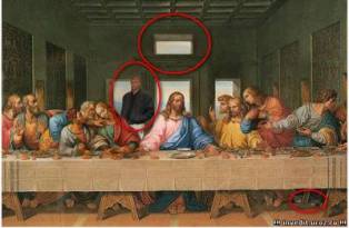 На ней можно найти три ляпа: кондиционер на стене за спиной Иисуса, человек, который стоит слева от Иисуса и лишние предметы под столом под самым крайним справа апостолом.
