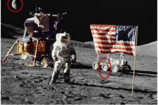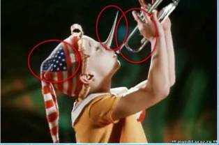 Три фотоляпа удалось нам все же найти: американский флаг на шапке Буратино, кончик носа Буратино и основание трубы.
