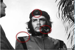 На нем три фотоляпа: звезда на берете Чегивары, левый погон на плече и трубка у него во рту.