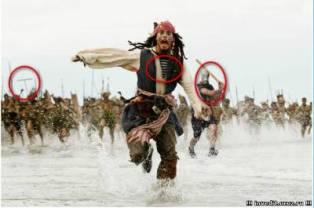 На кадре видно запечатленный снимок из фильма "Пираты Карибского моря".