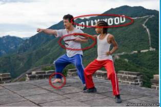На нем сразу видно 3 ляпа: надпись "Голивуд" на холме на заднем плане, кирка в руке Чана и босая нога Джекки.