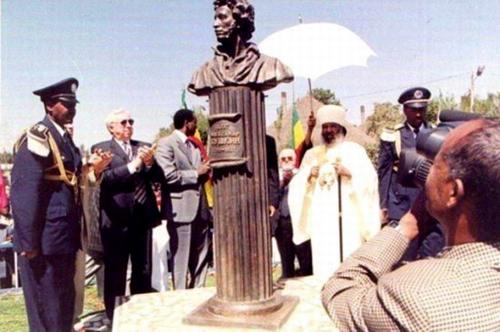 3. Памятники Пушкину есть почти в каждом городе России. Но есть они и в других странах и даже на других. континентах. Примером может служить памятник в Эфиопии в их столице Аддис-Абебе. Бронзовый монумент русскому поэту - первый и единственный памятник Пушкину на территории Африки, который был открыт 19 ноября 2002 года в центральной части города на улице Пушкина. На красивом мраморном постаменте высечены слова: «Нашему поэту».