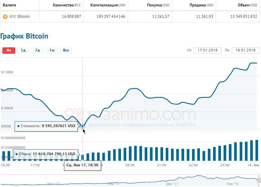 А начал потихоньку падать курс криптовалюты более двух недель назад. Сначала биткоин сбрасывал понемногу, но в последние дни, начиная с 15 января 2018 года обрушение усилилось. Только 16 января текущего года биткоин упал резко до 12000 долларов за монету, а сегодня до 10000 долларов. Но долго на отметке в 10К Bitcoin не продержался и уже сейчас за монету просят около 11000 долларов.