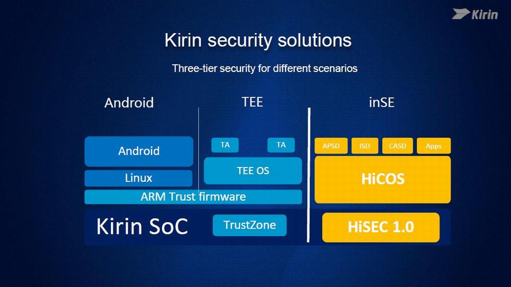 Уже достаточно давно мобильные телефоны служат не только средством связи, но и выступают в роли хранилища личных данных, таких как пароли от социальных сетей, ПИН-кодов платежных карт и т.п. Инженеры Хуавей в вопросе улучшения систем безопасности отлично поработали, так как чип Kirin 960 является первым мобильным решением, в котором интегрирована защита HiSEC V100. Благодаря этому процессор поддерживает такие алгоритмы защиты, как CRT-RSA,RSA,DES/3DES и AES. Также имеется информация, что технология оплаты, внедренная в Кирин 960, одобрена следующими влиятельными финучреждениями КНР: CFNRA и China Union Pay.