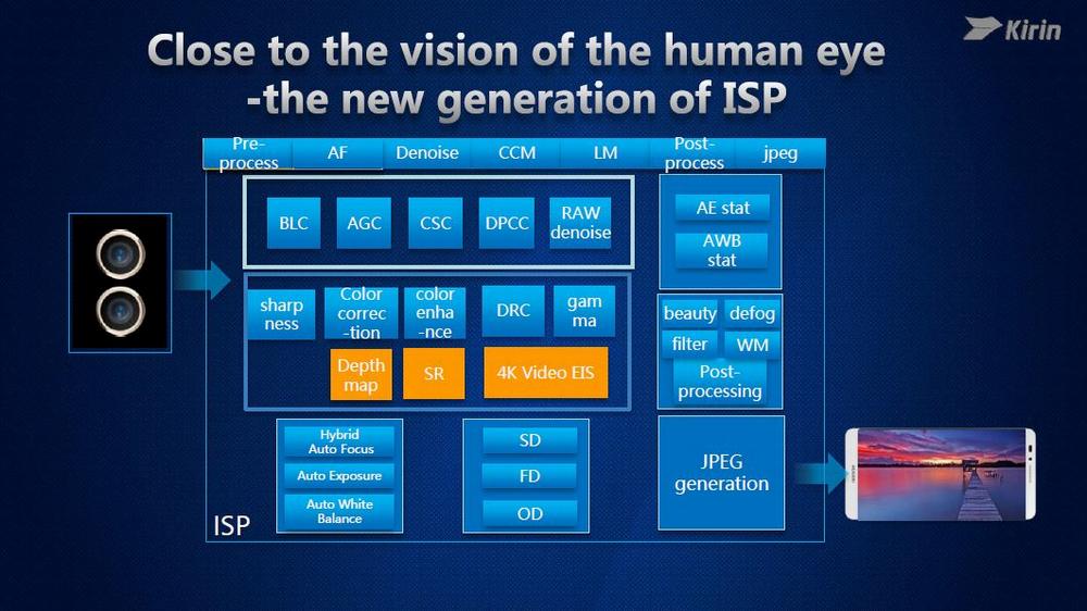 Компания Хуавей, в отличие от конкурентов, имеет большое количество смартфонов с двумя основными камерами, поэтому при разработке чипа Kirin 960 этот момент учли. Инженеры компании внедрили в камень ряд технологий, которые позволяют улучшить качество снимков с двух камер. Процессор отлично справляется с цветными и монохромными матрицами, при этом поддерживает запись видеороликов в 4К и электронную стабилизацию изображения. Теперь не только iPhone 7 Plus может похвастаться функцией размытия заднего фона в реальном времени, так как данная функция доступна и в устройствах с чипом Kirin 960 - в том же Huawei Mate 9. В общем, новый процессор начинили множеством улучшений, которые позволяют на смартфоне получать фотографии, близкие к тем, что получаются на любительские зеркальные камеры.