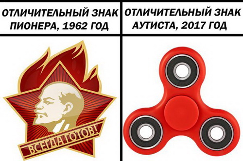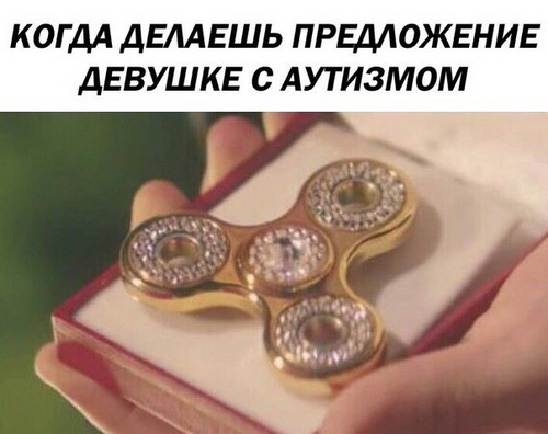 Изначально спиннер был создан инженером-химиком Кэтрин Хэттингер для её дочери, страдавшей от редкого нервно-мышечного аутоимунного заболевания - миастении Эрба-Гольдфлама. Эта болезнь представляет собой хроническое заболевание, вызывающее слабость и утомляемость поперечнополосатых мышц. Заболевшие ей люди отнюдь не становятся аутистами - у них просто появляется слабость, уменьшается мышечная масса и, при самом негативном развитии болезни, может развиться паралич. А аутизм, напомним, это болезнь головного мозга, проистекающая из несогласованной работы различных его отделов. Аутистам тяжело взаимодействовать с другими людьми, часто они не понимают чужих эмоций. Они редко смотрят в глаза другим людям и чаще всего имеют нарушения речи. Так что называть спиннеров аутистами попросту бессмысленно - ничего общего с аутизмом болезнь первой обладательницы спиннера не имела. Тем не менее люди любят унижать других по первому попавшемуся признаку, поэтому лозунг "спиннеры для аутистов" пронесся грохочущим экспрессом по мировой сети и породил немало мемов про спиннеры (правда, пока что в основном - на английском языке). Однако ниже мы собрали десять лучших мемов про спиннеры на русском языке, дабы наглядно показать, что именно любят высмеивать в мемах про спиннеры.